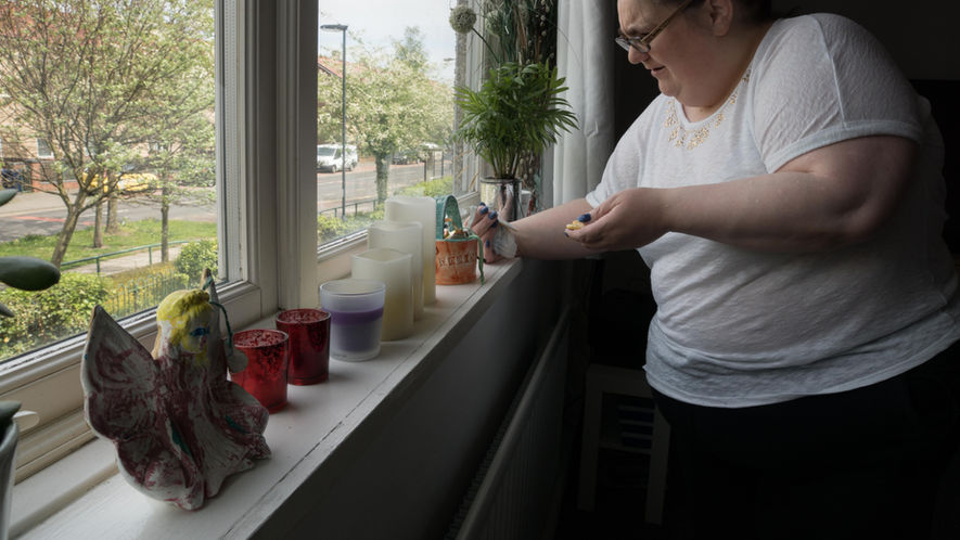Because, due to constraints on support and benefits, Jason and Victoria are often confined to their flat, this project is also a study on the domestic life of disability; a life that is all too often invisible to people whose only encounter with disability might be on the street, when riding public transport, or in the workplace. This domestic space is something that I, as a photographer, want to translate for non-disabled audiences, to give an idea of the sheer range of experience, emotion and stories that go on behind closed doors.